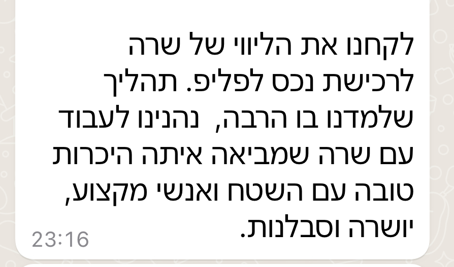 בכל השקעה ישנם המון פרטים שרצוי שנדע ונבין את משמעותם. בליווי מקצועי תקבלו הסברים מפורטים על כל שלב בהשקעה, יחד נבדוק שהתהליך מתבצע נכון, החל מבדיקת הנכס, שוויו ומצבו, והאזור בו הנכס ממוקם, ועד חתימה על החוזים והבנתם, מול כל אנשי המקצוע המעורבים בתהליך, כולל חוזה שכירות לדיירים שימצאו מתאימים או חוזה מכירה אחרי שנשפץ את הנכס. אהה, וכמובן גם אאתר את הנכס המתאים ביותר להשקעה על פי הקריטריונים שמתאימים לכם, כמו תקציב, רמת סיכון ועוד.